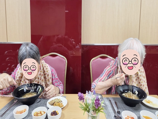 어르신들께서 시원한 물냉면과 소고기 육전이 폭염도 잊게 만든다고 말씀하시며 즐겁게 식사를 하셨습니다.