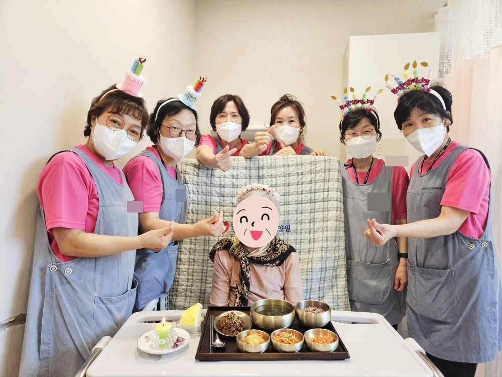 5/7(화) 14:30 본 요양원 5층 다목적실에서 5월 생신잔치를 진행했습니다.