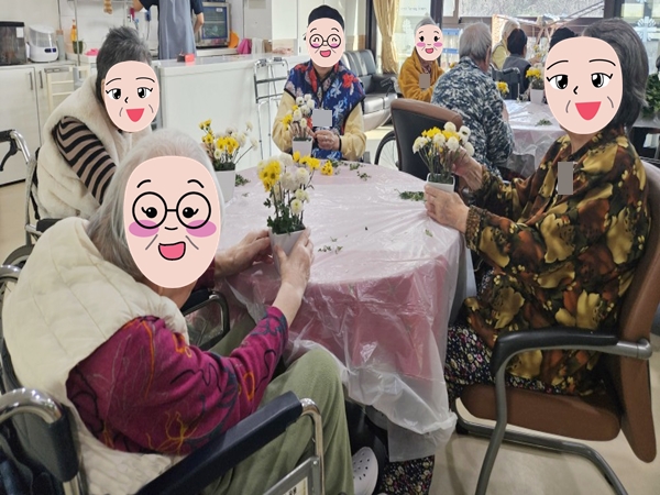 1/8(월) 4층 생활층에서 생화를 이용하여 꽃꽂이 원예활동을 진행하였습니다.