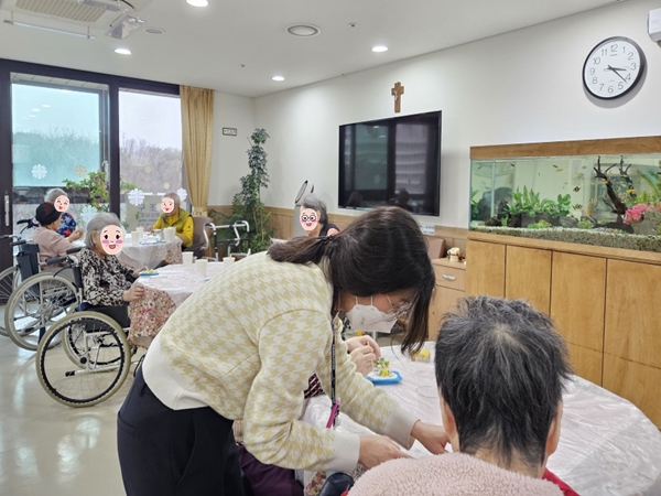 3/25(월) 4층 생활층에서 부활절 석고방향제를 만드는 활동을 진행하였습니다.