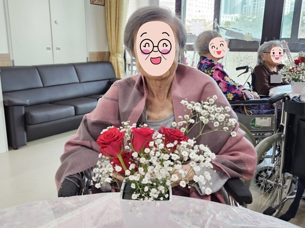 완성된 장미꽃화분은 어르신들께서 보실 수 있도록 각 생활층에 비치하였습니다.