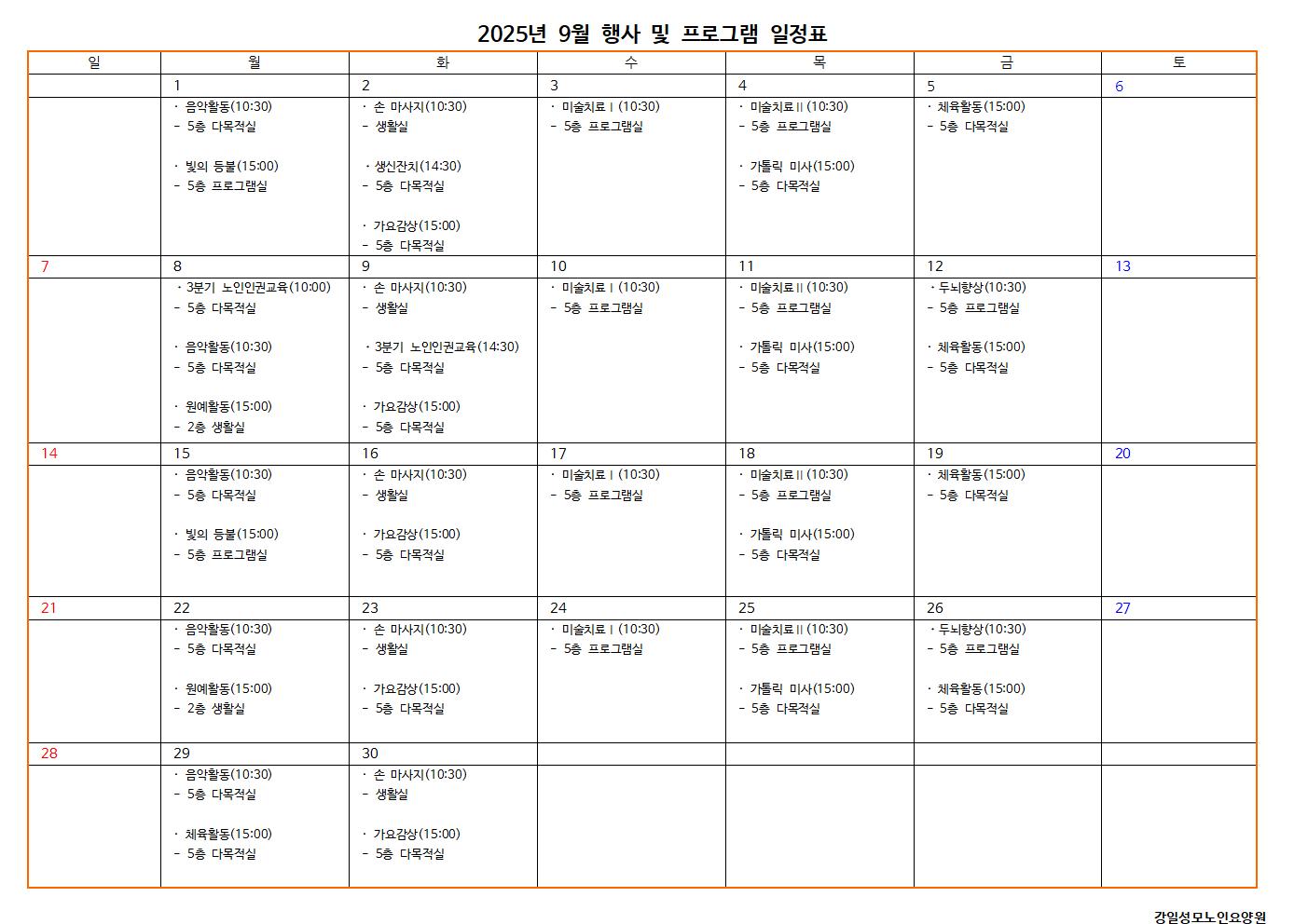 2025년 9월 프로그램 일정표